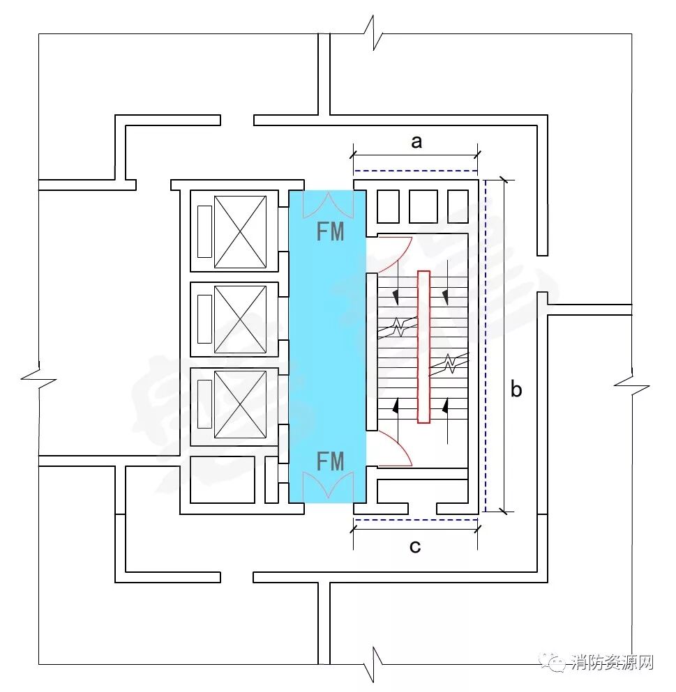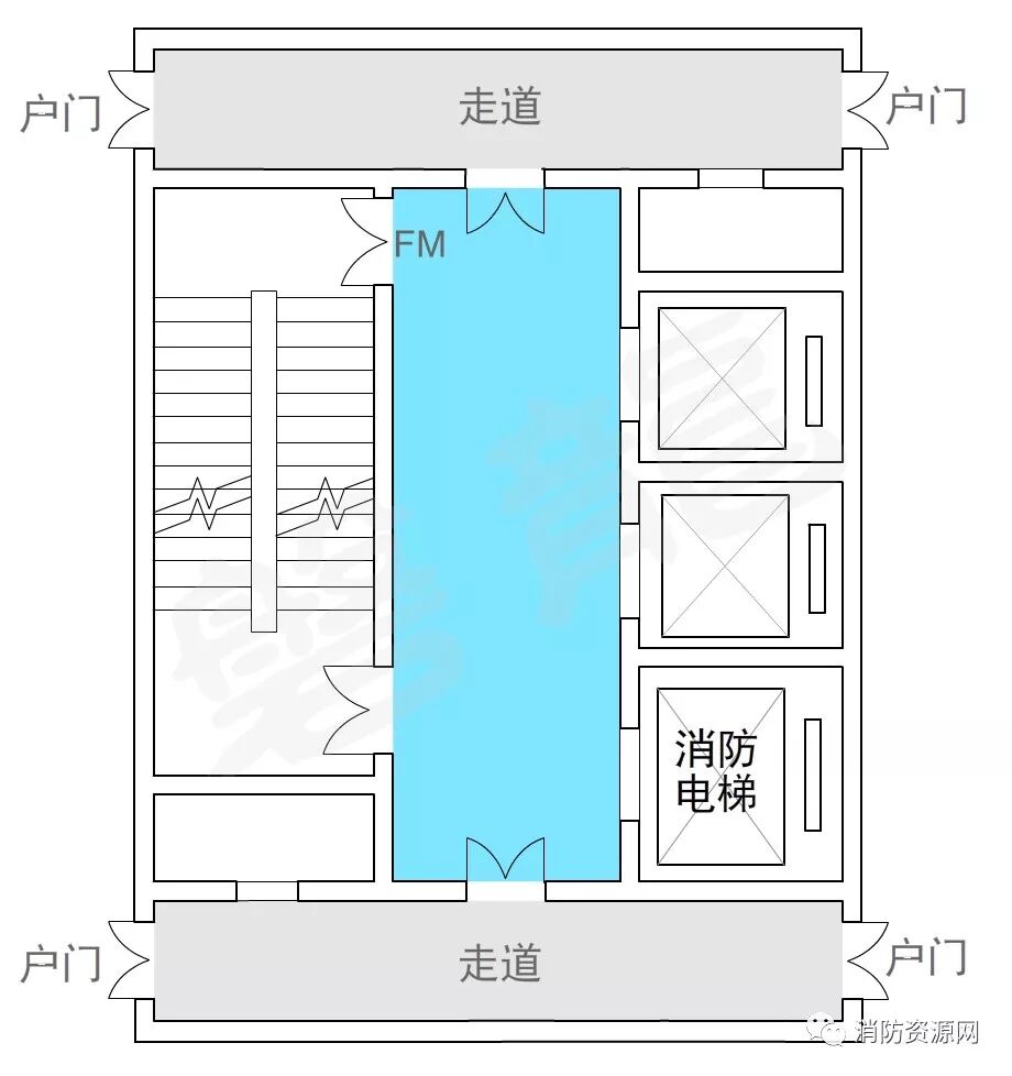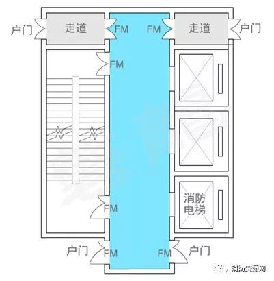 五、需要说明的是:消防电梯前室并非人员疏散的安全出口,人员可以通过消防电梯前室疏散(比如合用前室的情况),因此,疏散走道通过独立的消防电梯前室(不能是合用前室)连通,通常是被允许的。