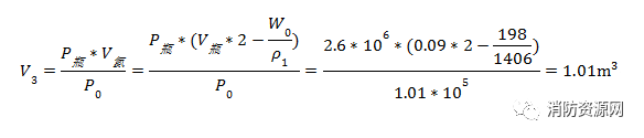 柜式七氟丙烷的压力约为2.5MPa(表压),瓶内氮气压力为P瓶=2.6MPa(绝对压力),折算到常温常压下的气体体积(V3)为: