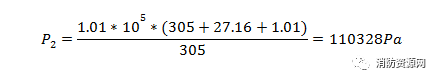 3、气体灭火剂喷放后,防护区压强P2: